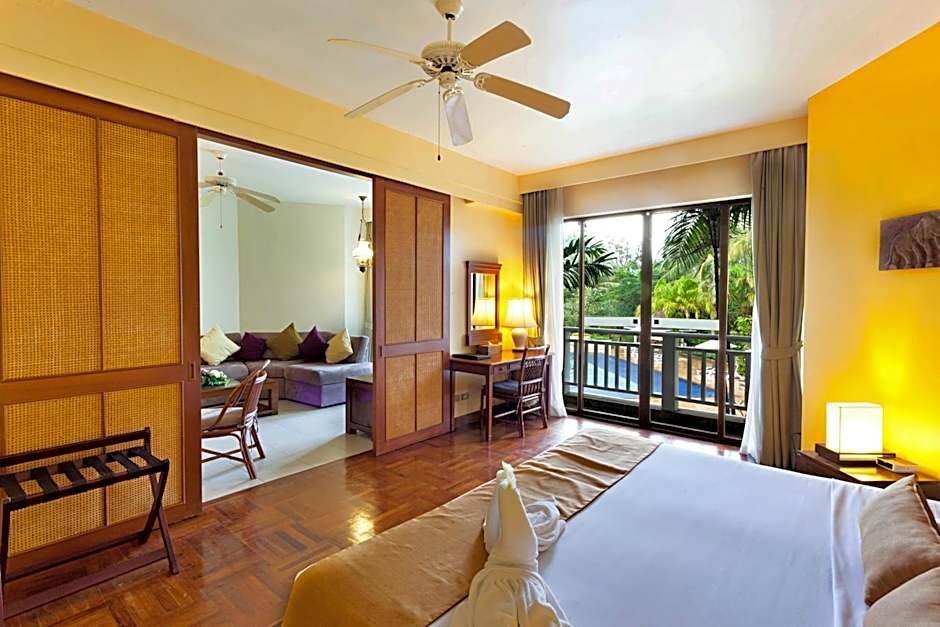 A romantic suite with the living room overlooking either the Laguna Phuket Golf Course or the swimming pool. The suite also offers an bedroom with attached bathroom, a kitchenette and private balcony. The private bathroom comes with shower facilities.